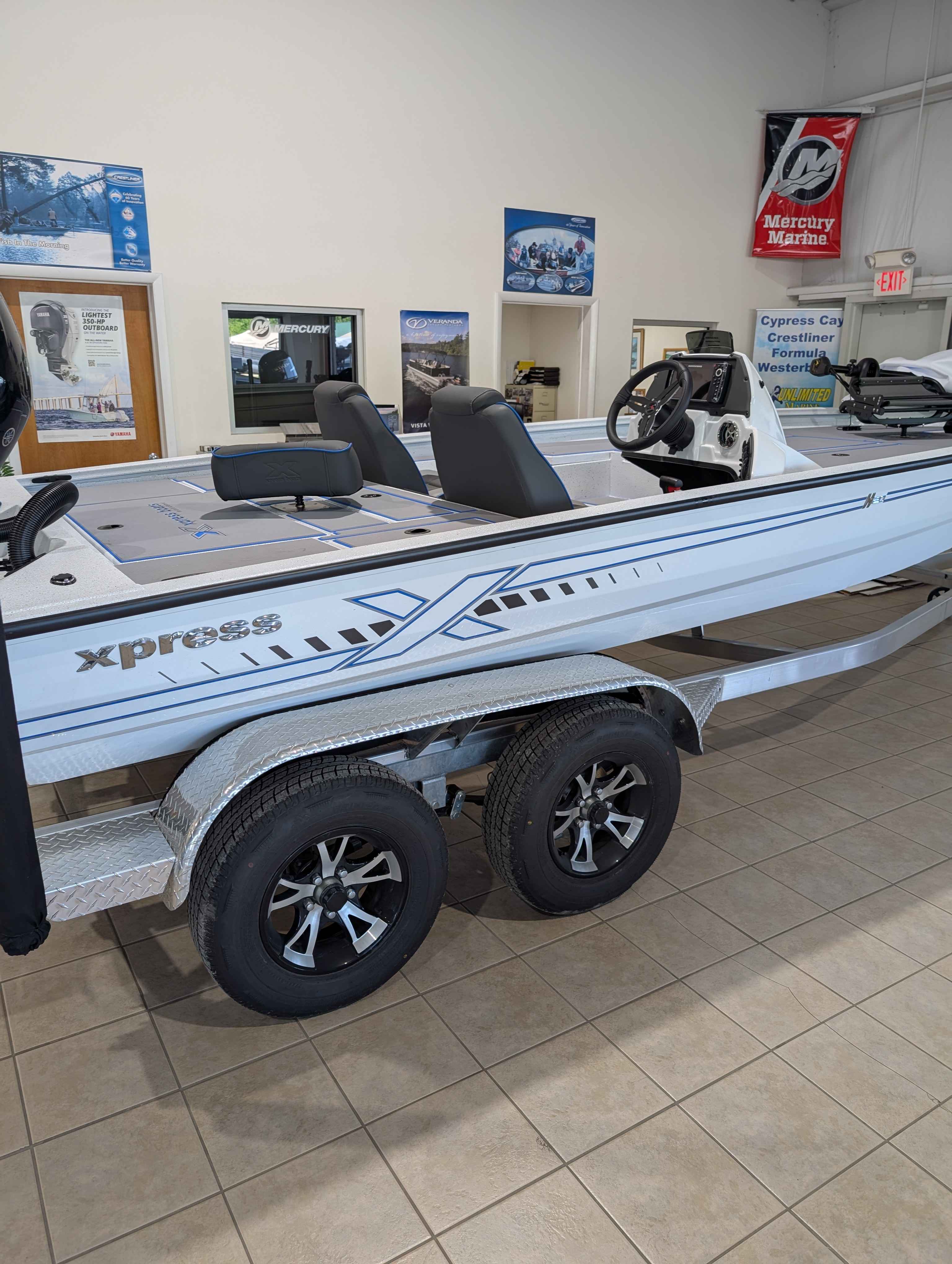 Fresh arrival. New Xpress H20 Bass. Powered by Yamaha 175 SHO engine. Equipped with Minn Kota Maxxum trolling motor, Helix 7 in console, Hot foot and more. Sitting on matching tandem axle aluminum trailer.