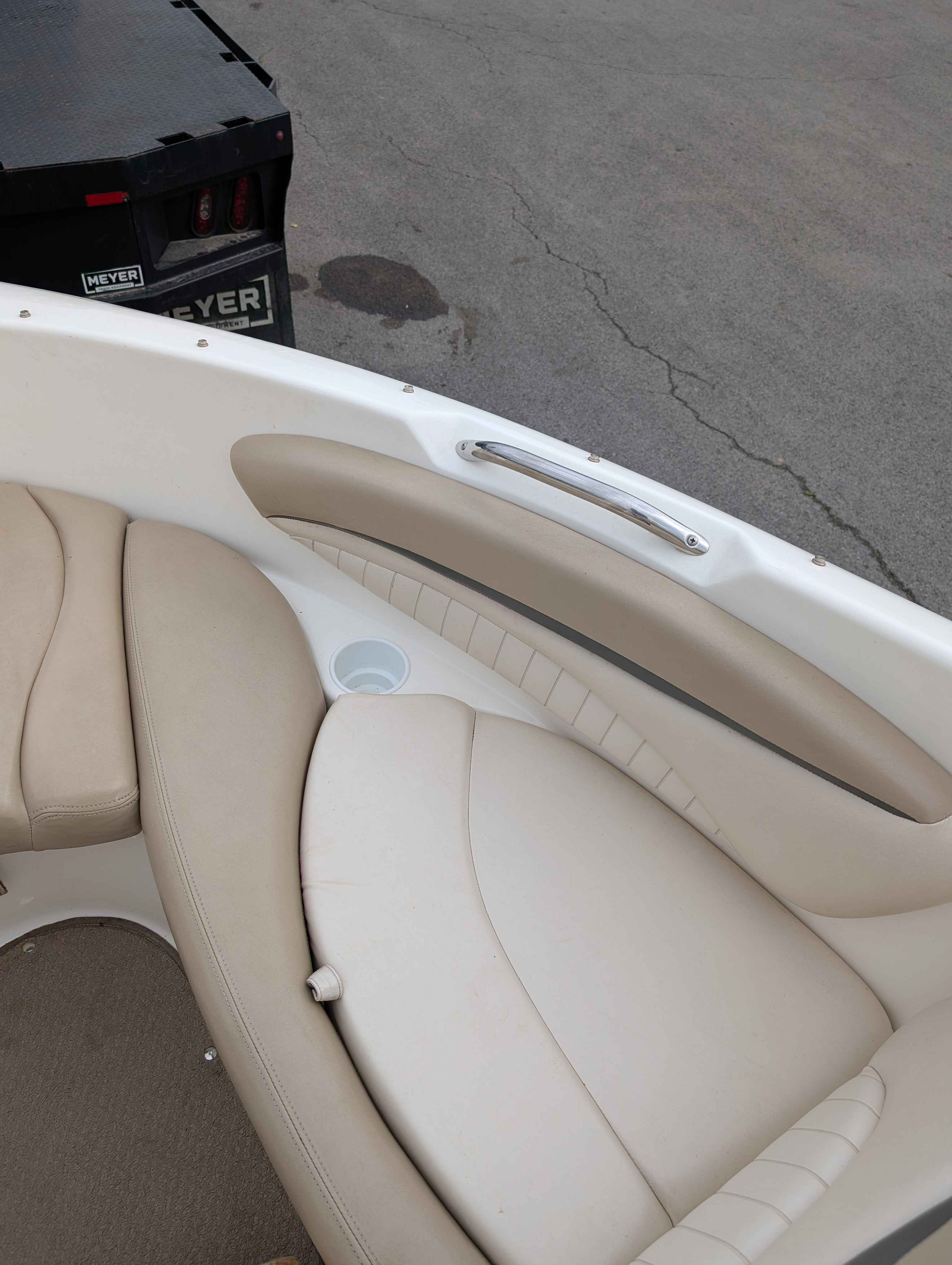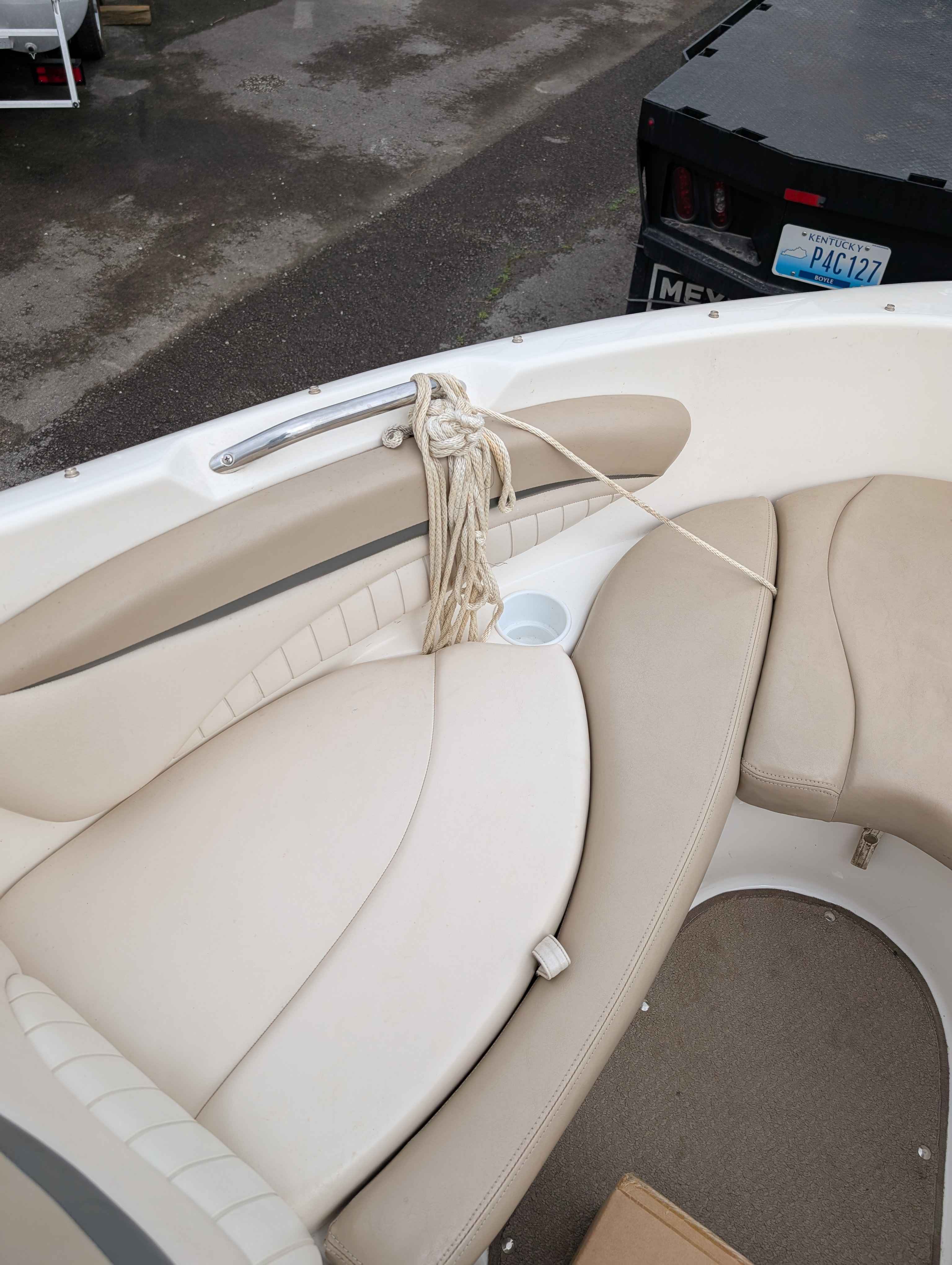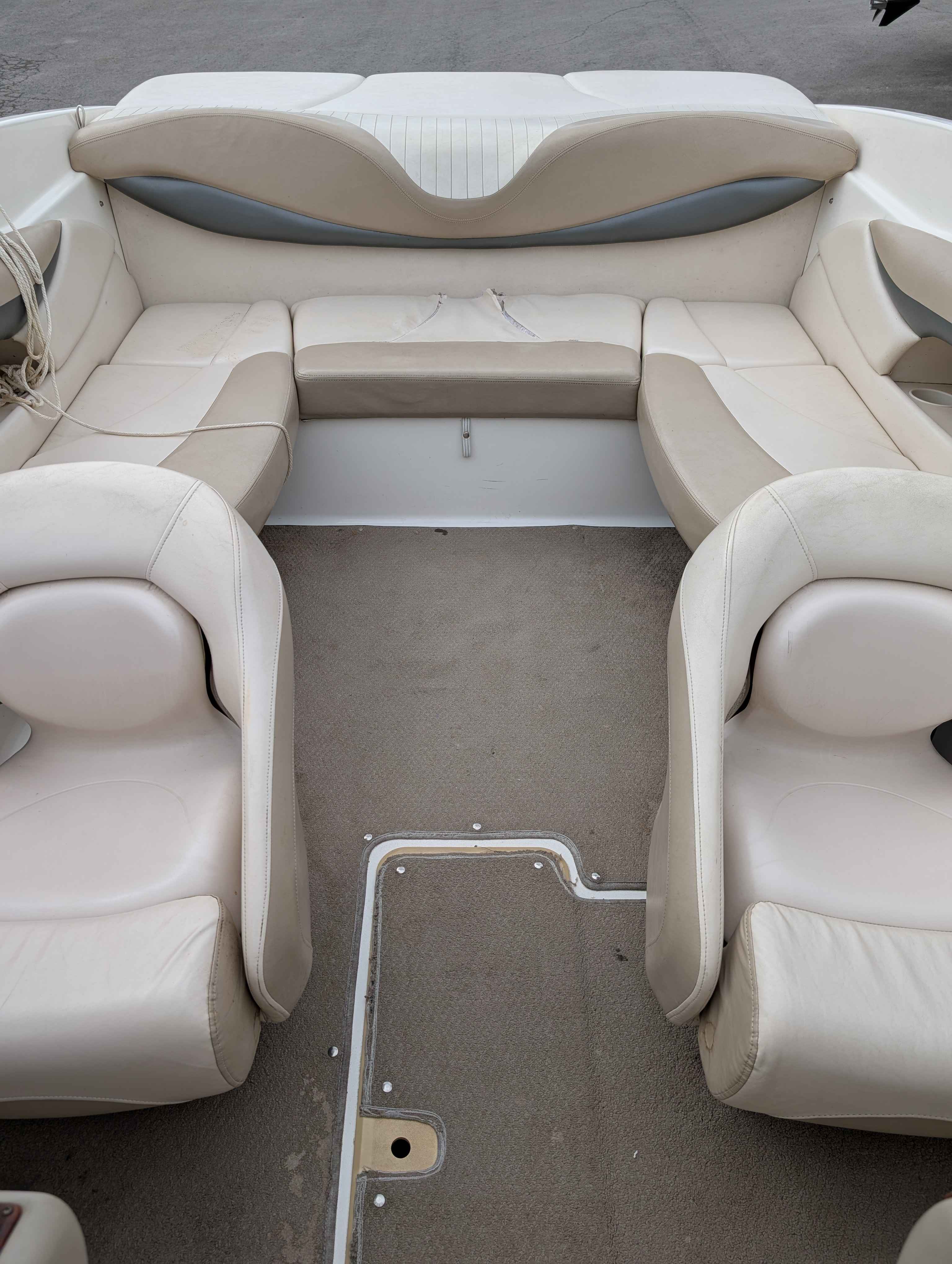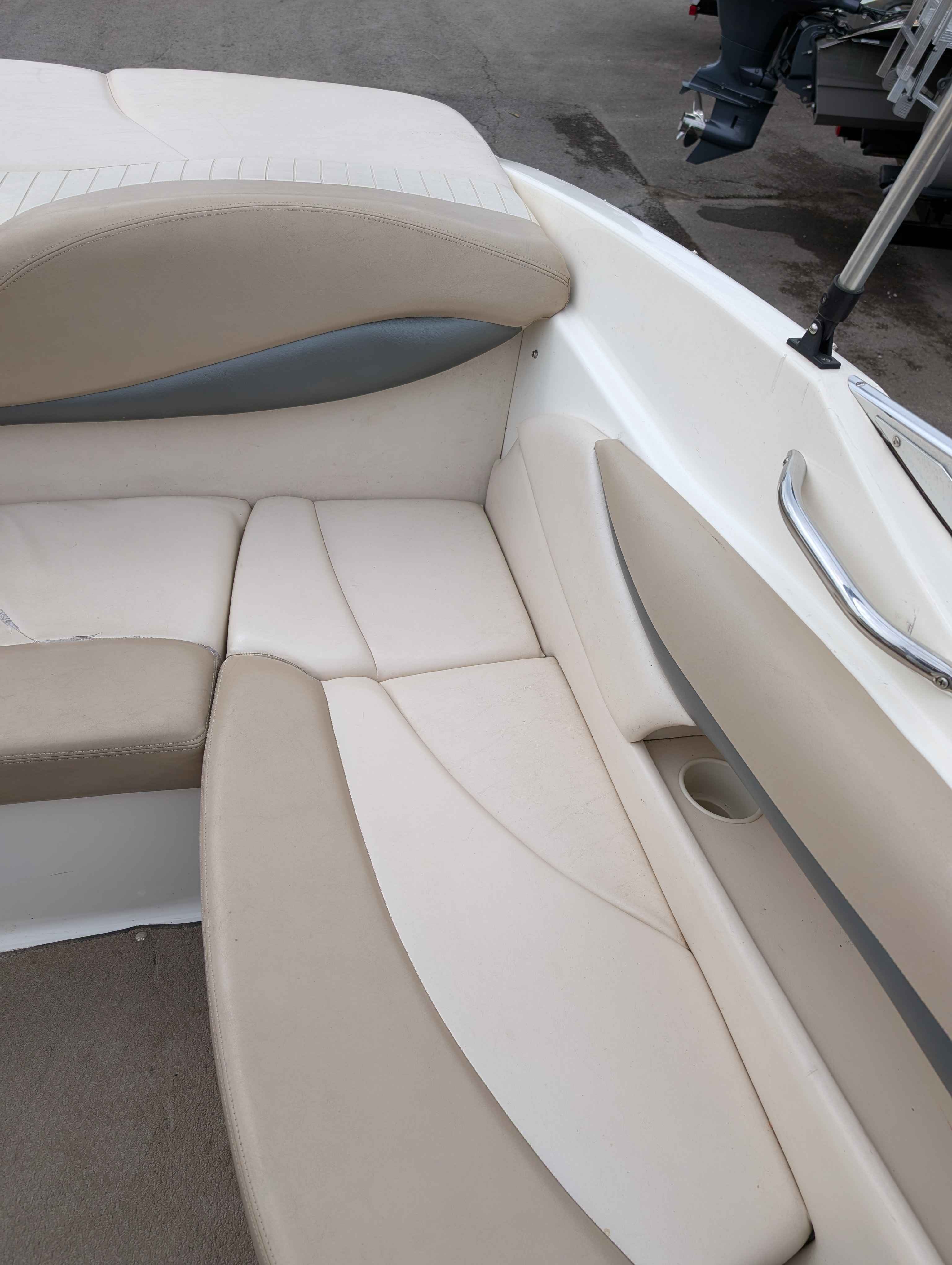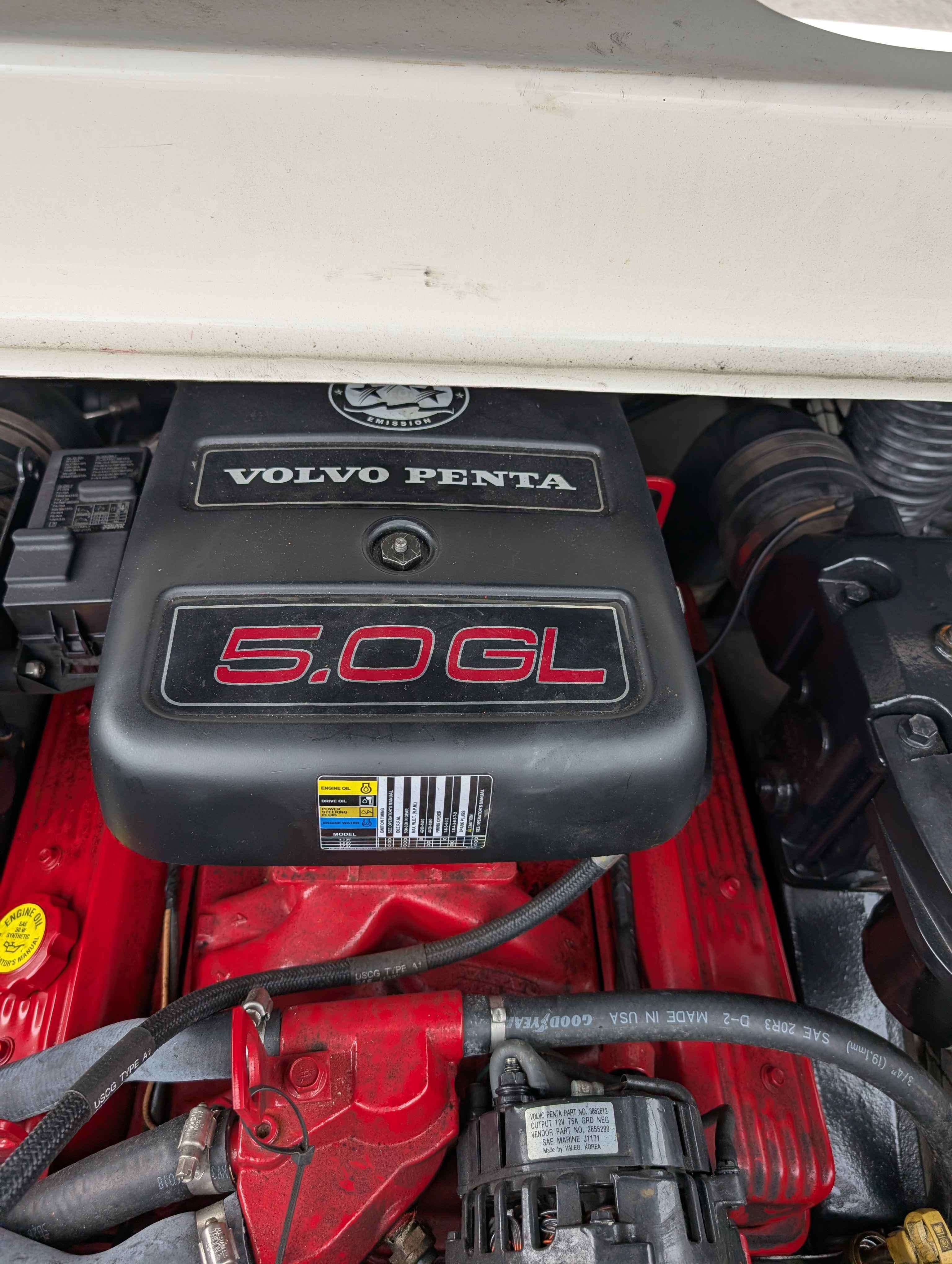 Nice used bowrider. Powered by Volvo 5.0 V8 engine. Equipped with bimini top, sound system, ladder and more. Sitting on matching trailer. Ready for cruising the lake.