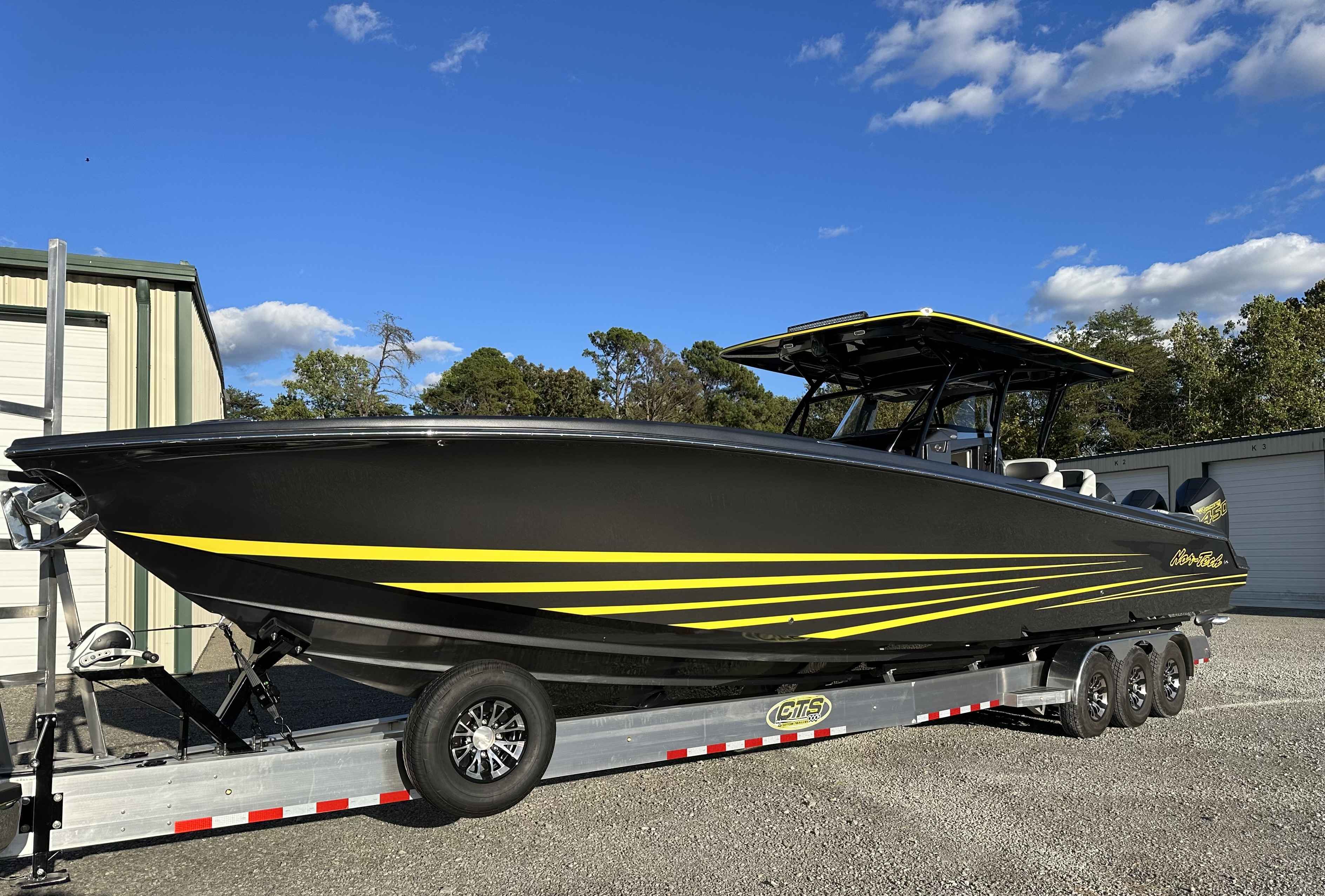 This 2022 Nor-Tech 390 Sport is IN STOCK, turn key, and ready to go. Fully loaded. Powered by triple Mercury 450Rs (approx 360 hours) and packed with top tier features, this boat delivers luxury and performance in every detail